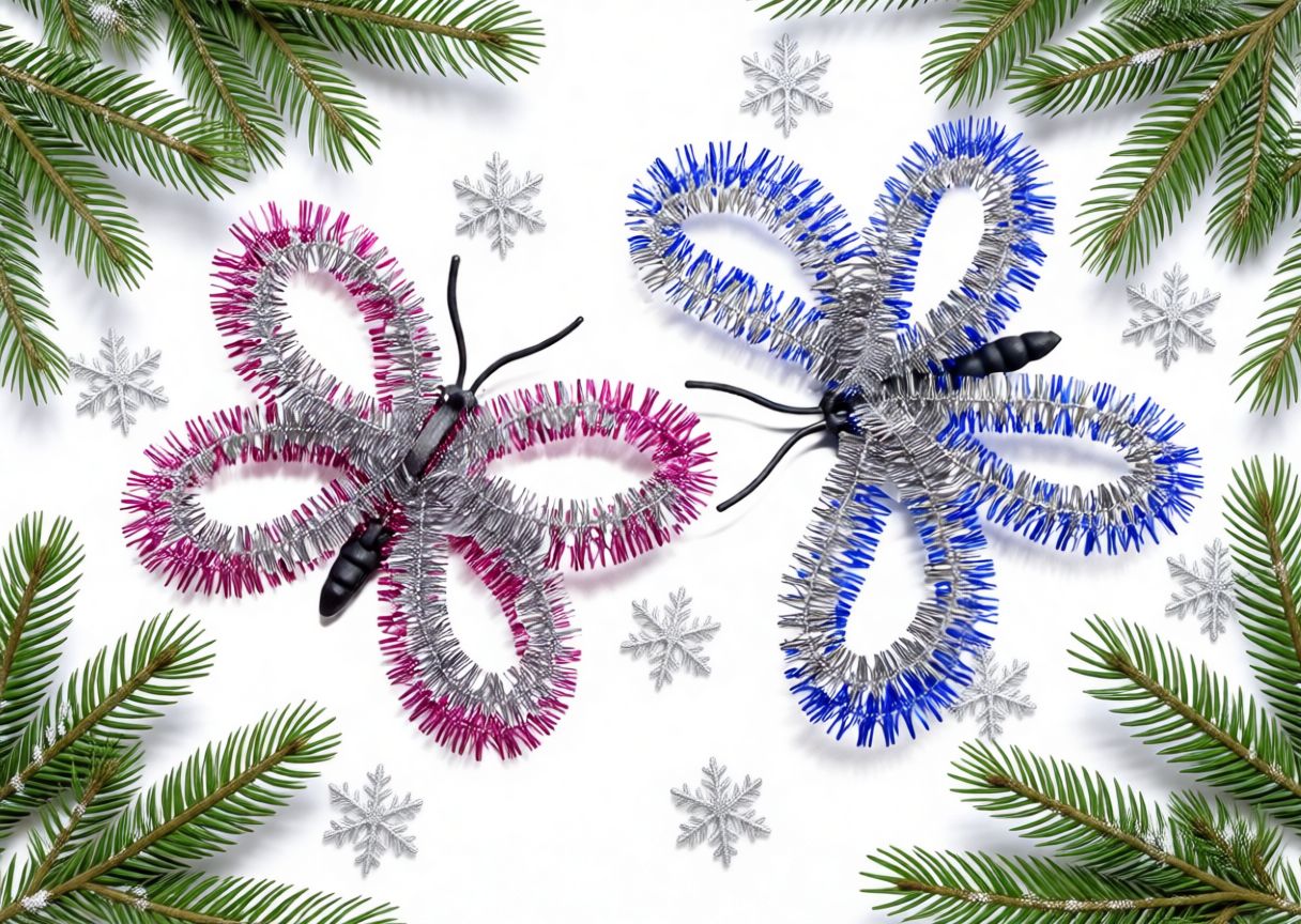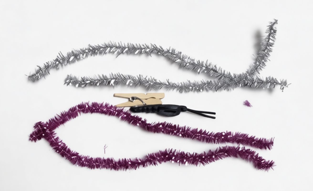 Пушистая синельная проволока (мишура), двух цветов — для формирования крыльев бабочки. 4 шт.